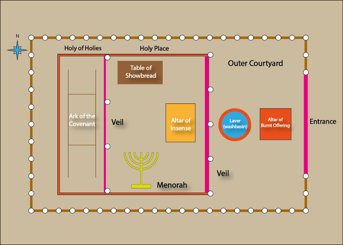 Below you can see a schematic drawing representing how these elements were placed in the Mishkan: